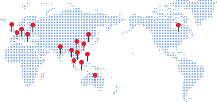 メンテック拠点数:国内 6拠点 / 中国 5拠点 / EU 1拠点 / アメリカ 1拠点