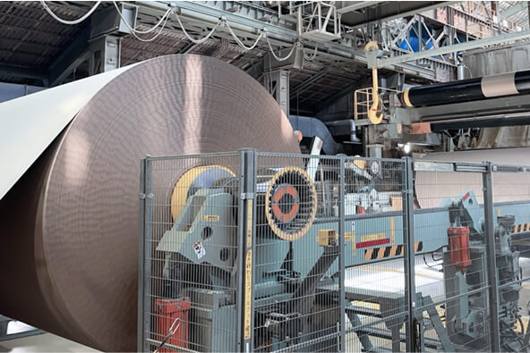 紙のリサイクル工場の中でメンテックが向き合うのは、再生紙づくりの中核を担う巨大な機械、「抄紙機(しょうしき)」。
