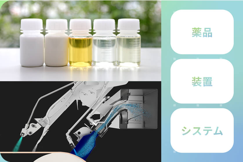 技術の軸となるのは「薬品・装置・システム」。これら3つに、IoT・ビッグデータ・AIといった最先端技術、他分野の知見なども柔軟に取り入れ、他社にはないサービス・ソリューションを開発しています。