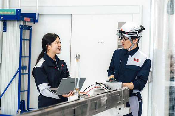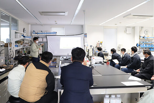 入社時は当社技術や製紙技術など基本となる知識を、1か月間にわたり座学やラボ実習で学びます。その後も定期的な勉強会を設けて、日々新しくなる技術知識の習得をサポートします。