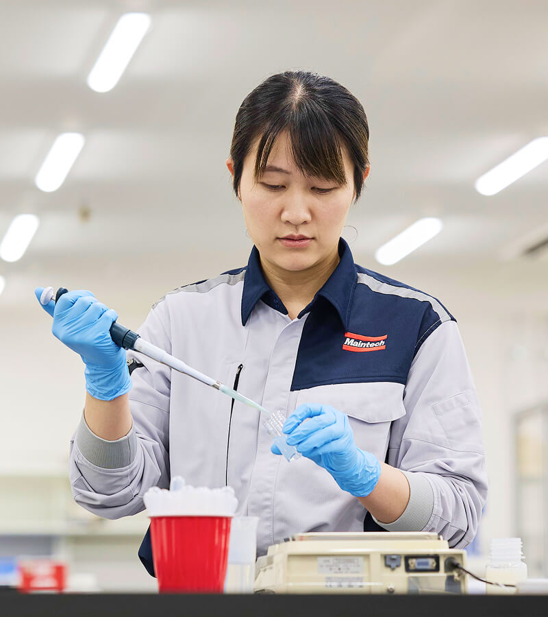 当社が提供する薬品・装置はファブレス体制(自社に製造拠点を持たない)で生産されています。製造に関わる仕事では、協力会社と連携し、製品の量産化・品質管理・納期調整に加え、最適な原料の調達やサプライチェーンの構築をしています。