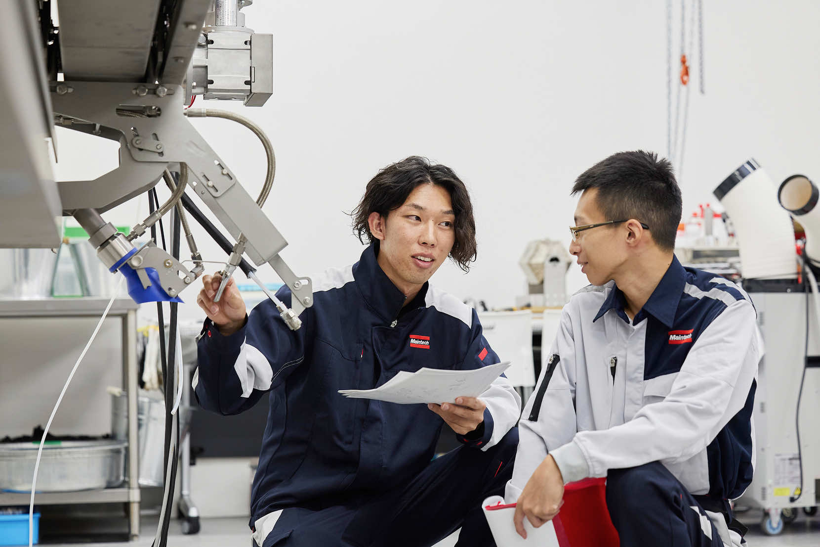 技術営業職(SE)は技術専門職(AE)同様に、お客様に近いポジションであり、現場の課題や困りごとを直接伺い、それに対してメンテックのアプリケーション(装置・薬品・システム)を組み合わせたソリューションを提案・提供しています。